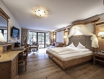 Unsere Suite Königspitze ist unsere rustikale Suite im Neubau. Mit dem getrennten Schlafzimmer auch perfekt für Familien.