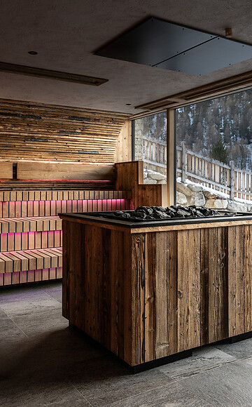 Traditional infusions, high temperatures and dry air – the perfect combination for intensive relaxation and a strengthened immune system. Breathtaking views of the Ortler, combined with soothing heat, ensure in-depth relaxation. The large glass fronts open up spectacular panoramic views, perfect for stepping out of the daily routine.