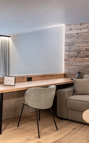 La nostra nuova Juniorsuite Luxury con una vista perfetta sull'Ortles e un ampio balcone.